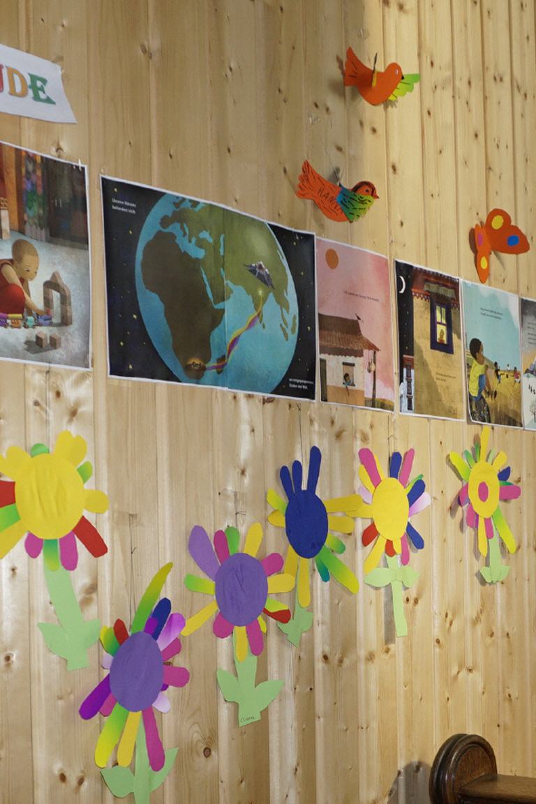 Das farbenfrohe Ergebnis schmückt jetzt die Wand unserer Bücherei.